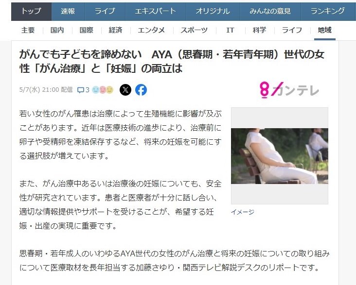 昨日、『がんでも子どもを諦めない AYA(思春期・若年青年期)世代の女性「がん治療」と「妊娠」の両立は』の記事がWeb配信されました。