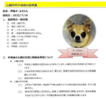 この度は、愛犬チワワのオールの僧帽弁閉鎖不全症の手術費用のプロジェクトにご支援いただき、本当にありがとうございました。
