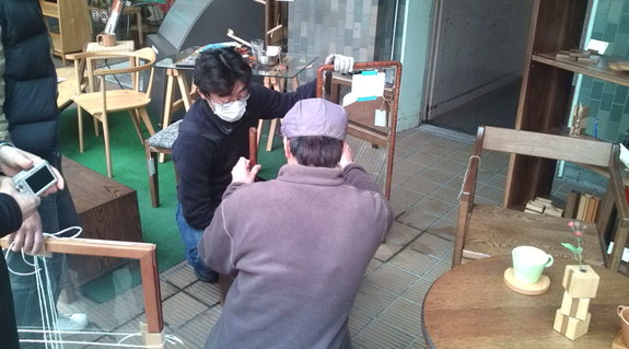 (家具職人さんとの家具の修理相談ボランティアの様子)