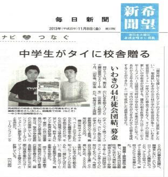 当時、福島県いわき市では平成23年度から「いわき生徒会長サミット」というものが始まっていました。これはいわき市内の全中学校(当時は44校)の生徒会長らにより組織されるものであり、定例ミーティングによる学校間の生徒会活動の意見交換をして自校の取り組みに生かすのはもちろんのこと、先ほど紹介した学校を建設するプロジェクトや海外派遣事業などを経験することによって、若い世代のうちからローカルとグローバル両方の視野を広げ、20年30年後のいわき、福島、日本、そして世界を担うような「人財」を育てようとスタートしたものです。