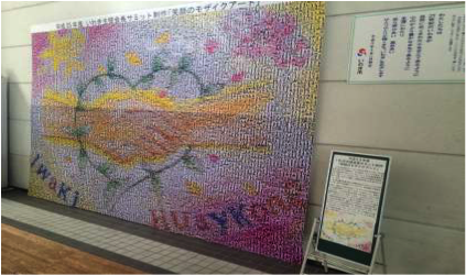 <ファイコン村の中学校に贈呈した笑顔のモザイクアート>