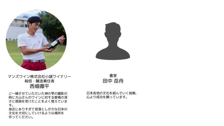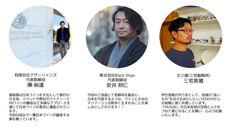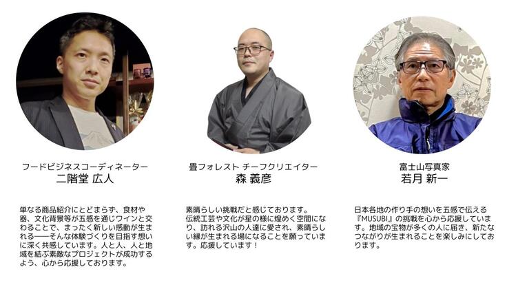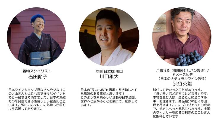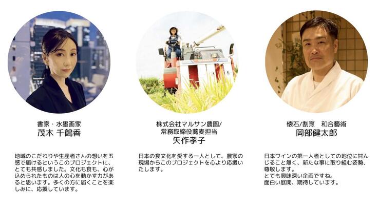 本プロジェクトは、日本各地のワイナリーの方々やワイナリー周辺の一次産業の方々、地方自治体の方々、工芸家の方々とのつながりから生まれた取り組みです。