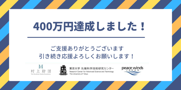 ご支援が400万円をこえました!300万円をこえてからわずか2日での400万円の突破に、実行委員会メンバーも驚きとともに感謝の気持ちです。