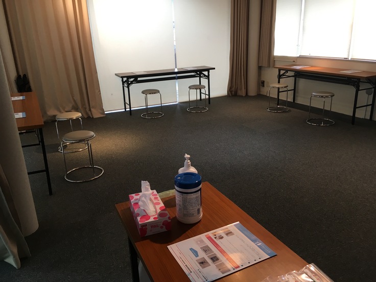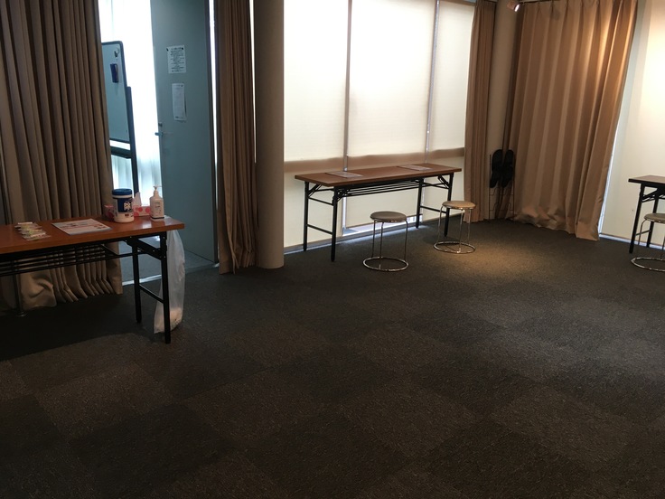 検査も「密」を避けるために、広いスペースを確保する必要があり、写真のような場所で劇団関係者の皆さまは検査をされたようです。