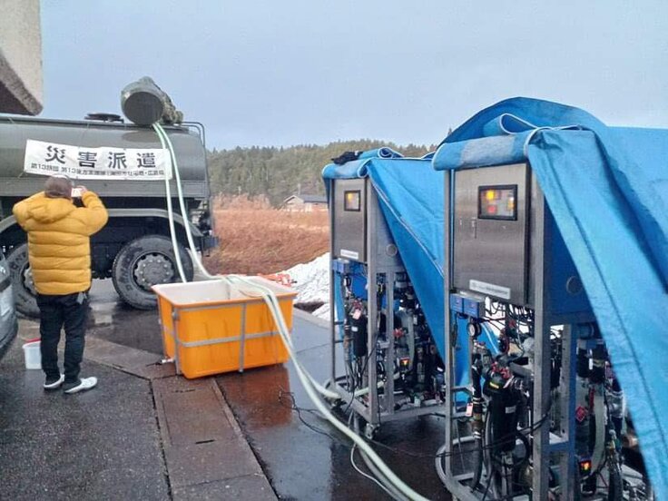 ①断水対策にて浄水器提供(陸上自衛隊による珠洲市への風呂設置に活用)
