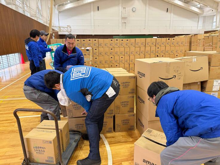 ・食料4,000セット、水160ケース、携帯トイレ1,000個などをすでに避難所に提供済