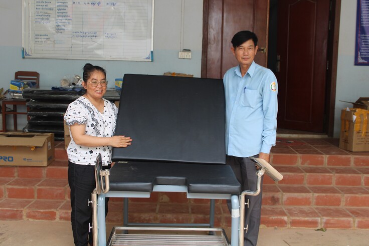 シェムリアップ州ソトニクム保健行政区内でニーズのあった保健センターに医療器材を寄贈しました。分娩台と分娩用医療器材に加えて、ドップラー、パルスオキシメーター、分娩介助用エプロンを寄贈しました。