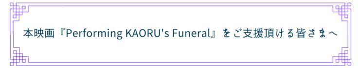 本映画『Performing KAORU's Funeral』(邦題・未定/直訳:カオルの葬式)に、大きなご支援を賜りますよう、どうぞ宜しくお願いいたします。