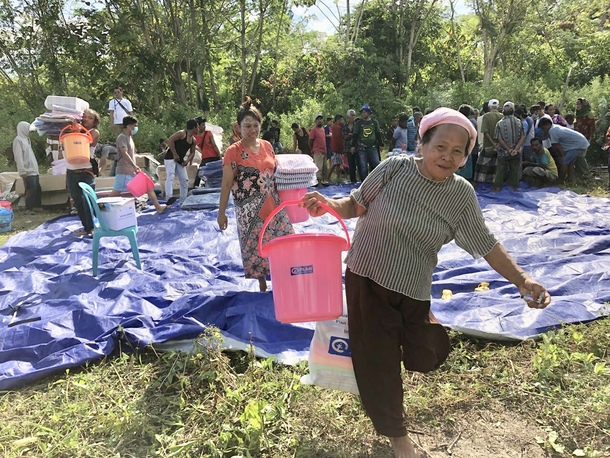 避難所の衛生状態の悪化に伴い、感染症のリスクも懸念されているため、プランは5カ所の避難キャンプで573世帯に衛生キット(タオル、歯みがき粉と歯ブラシ、せっけん、くし、衣服、バケツとひしゃく)を提供しました。今後さらに多くの衛生キットを提供し、避難キャンプで生活する人々の衛生状態の改善を目指す予定です。また、595のシェルターキット(テント用のシートや敷物など)を提供し、避難している間も少しでも快適に過ごせるように配慮しました。