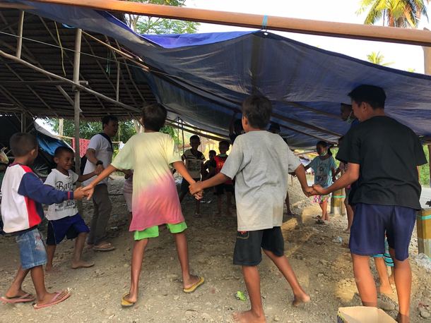 災害を目の当たりにしてショックを抱えた子どもたちが、そのストレスを発散する場や安心して過ごせる場所として、合計6カ所にテントを使った「子どもひろば」※を設置しました。これまでに159人(女の子91人、男の子68人)が利用して、レクリエーション活動を通じ、子どもたちが元気に遊びました。また、遊びだけではなく、女の子たちが月経時の衛生管理、子どもの保護、防災の知識を学べる場としても活用されています。