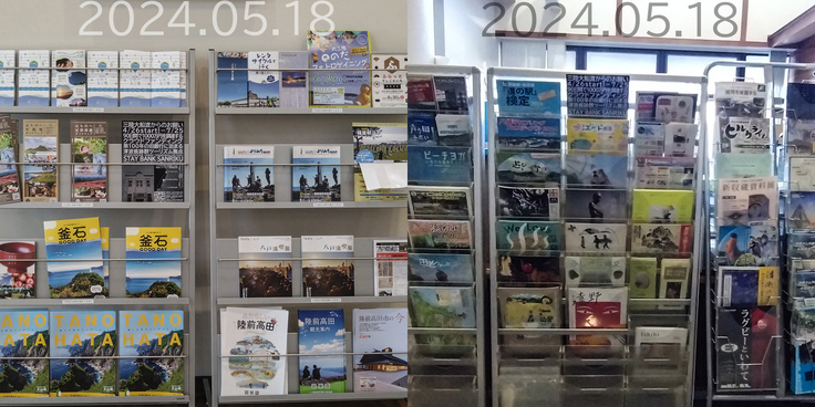 チラシ設置場所は写真右の久慈の街なかにある「道の駅くじ」、写真左の「道の駅いわて北三陸」の情報ステーションのラックに設置しました。
