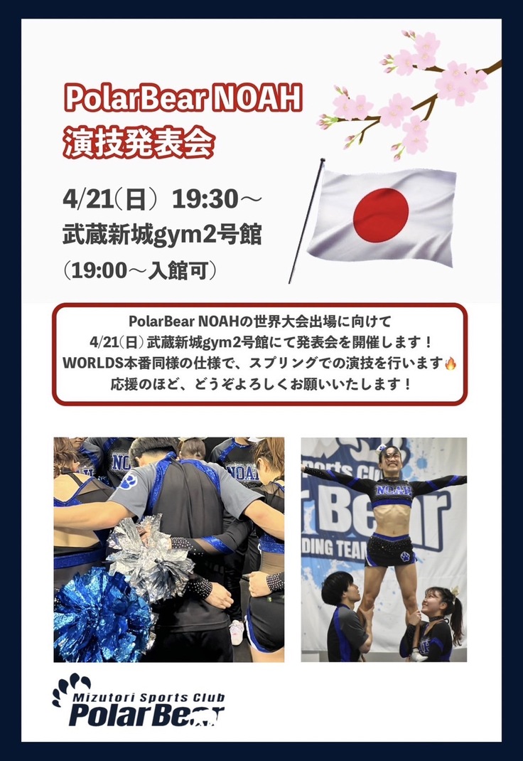 PolarBear NOAHでは現在、世界大会に向けた、演技発表会のご観覧を募集しています!