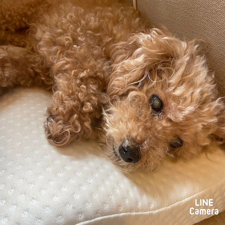 お仕事行ってくるねというと、いつもは起き上がってお見送りしてくれるのですが、今日は尻尾を振っただけでした。