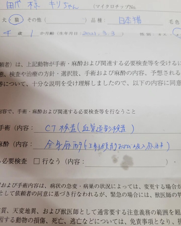 ご報告が遅くなりましたがきりちゃんの検査結果がやっとすべてでました。
