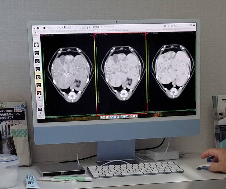 今回の貧血の原因は、肝臓からの出血の可能性が高くCT検査に挑みましたがはっきりとした原因はわかりませんでした。