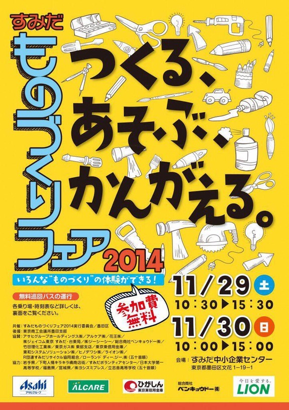 今日、私たちは、墨田区の中小企業センターで行われている「すみだものづくりフェア2014」に参加しています。