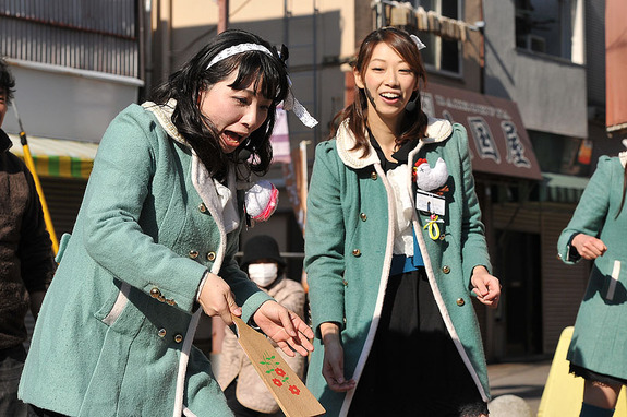 ステージの後は、お客さんも一緒に「羽根つき大会」!