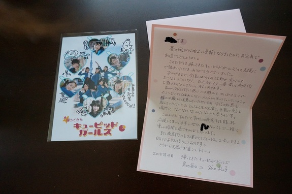 3000円の引換券の皆さんには、こんな、手書きのお手紙と、サイン入り写真をご用意しました。