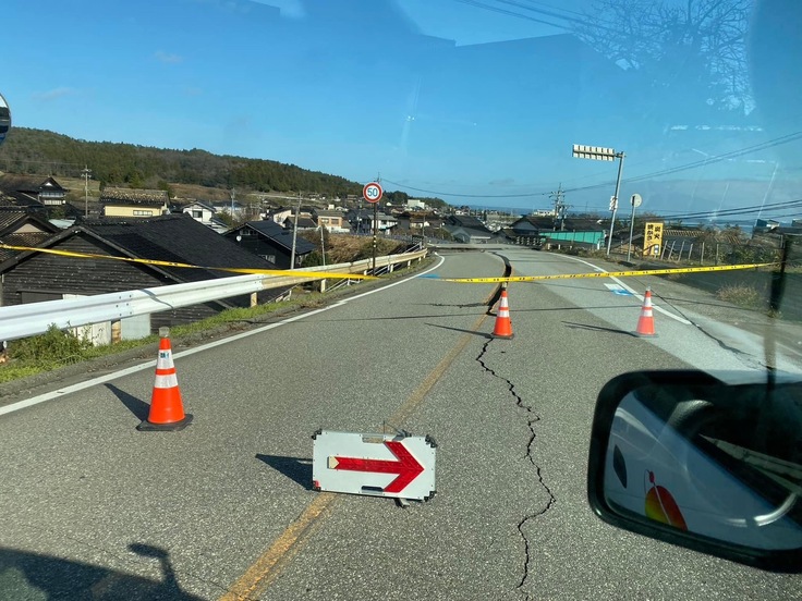 石川県に入り北上すると、道路陥没によりなかなか進めず、何度も迂回し、珠洲市にようやく到着したのが、18時間後でした。