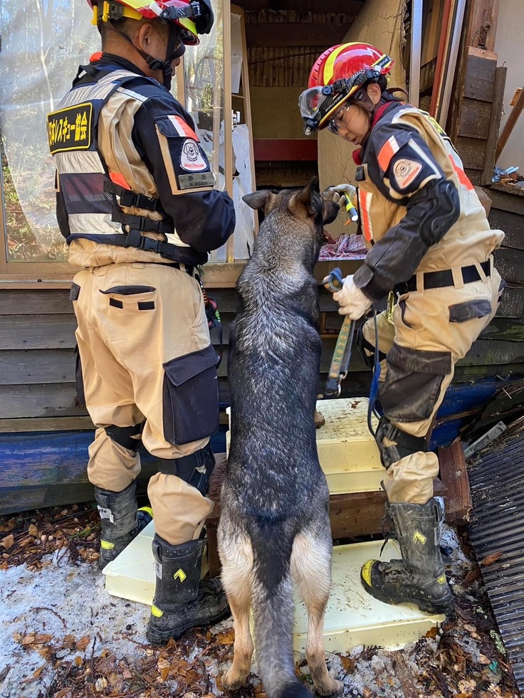 石川県より災害救助犬の派遣要請があり、災害救助犬2頭、隊員3名が再出動しました。