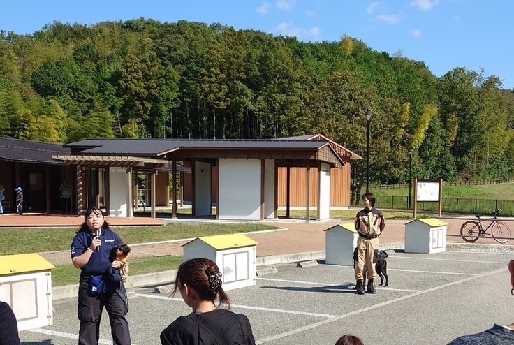 PR犬の『優音(うた)』、災害救助犬の『太陽』、『陸』、『湊(そう)』が参加し、