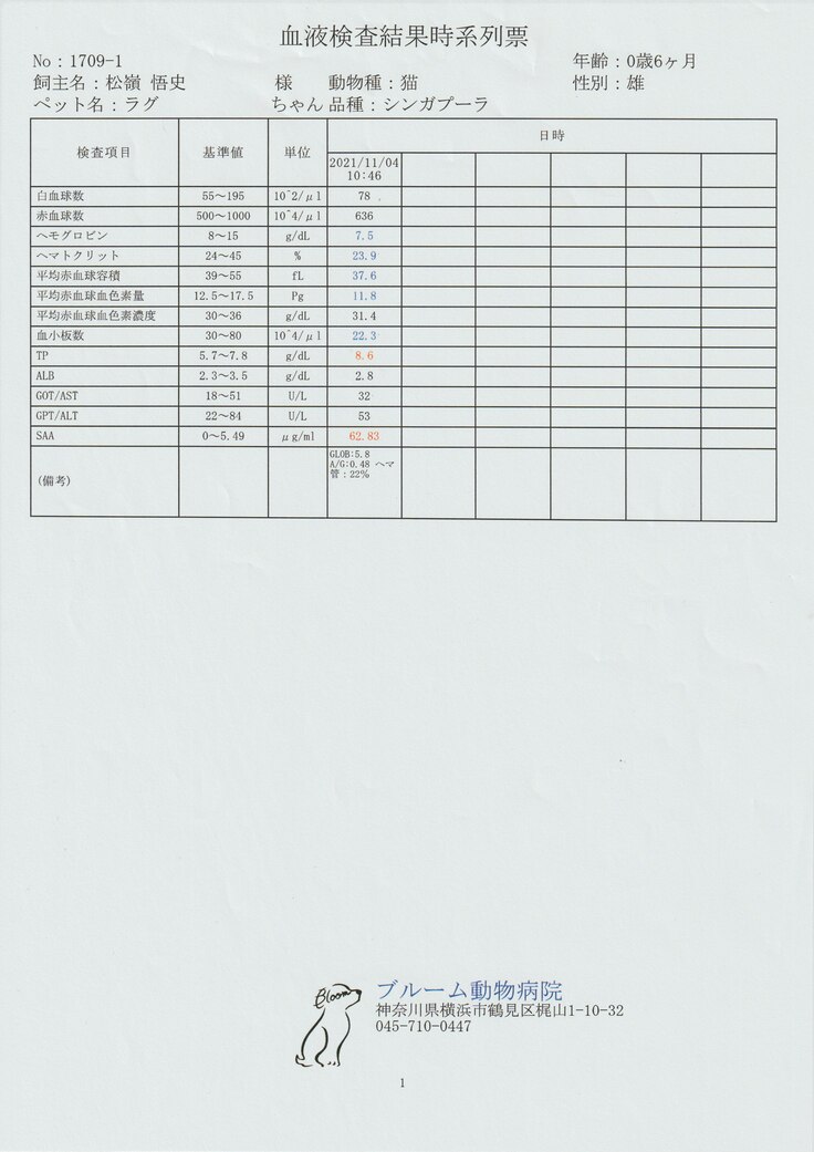 ↑この書類でFIP感染の可能性が高まりました。