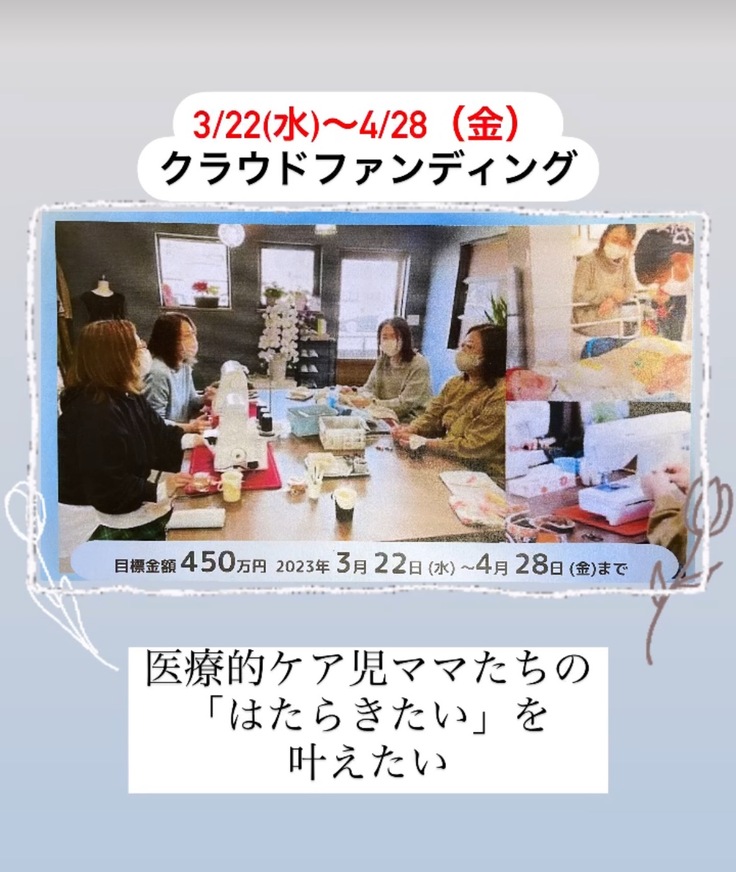 スタート4日目です! 医療的ケア児とそのご家族のためのクラウドファンディングにご支援を!