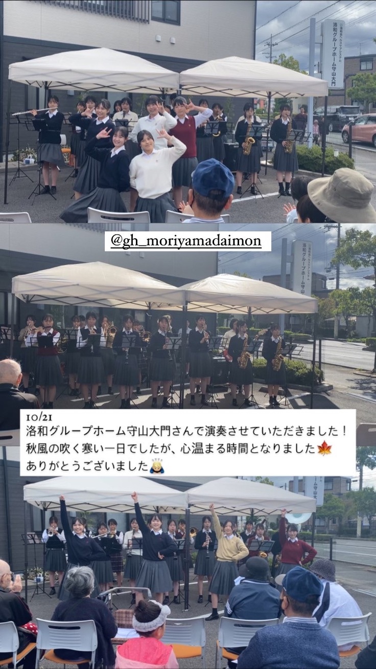 10月21日(土)非常に天候に恵まれた中、地域の高齢者施設で演奏会を実施いたしました!