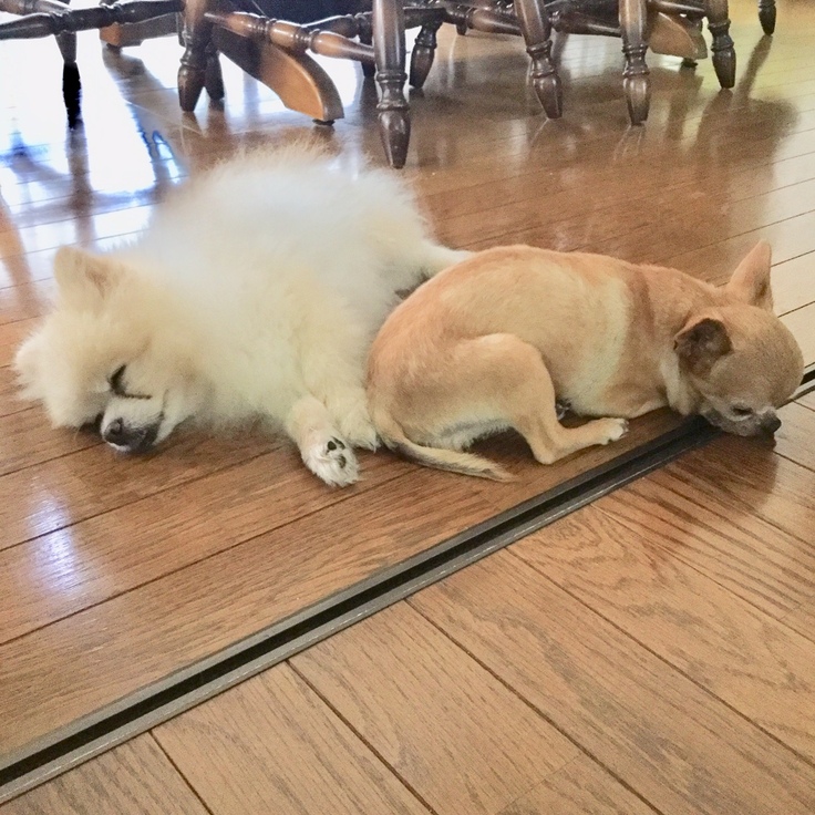 我が家の愛犬ろんはポメラニアンの男の子で10才になります。生後3ヶ月の時から寝る時も今もずっと一緒の大切な家族の一員です。一緒に暮らしているチワワのぽみはろんの事が大好き!毎日べったりで姿が見えないと部屋中を探し回るほどです。ろんの調子が悪い時は常に側に行き寄り添っています。そんな姿を見ているとほっこりします。
