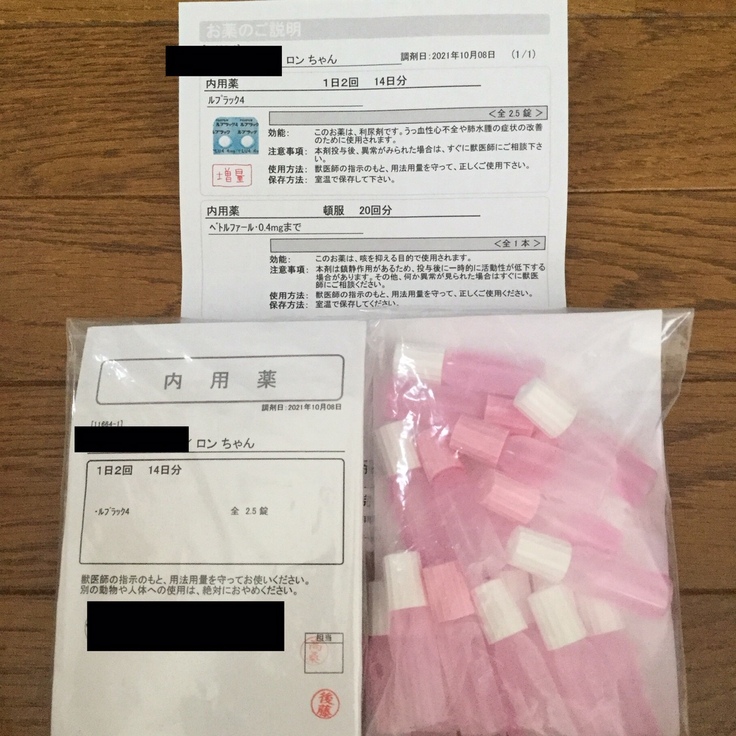 咳が止まらない日が続いており、心臓に過度の負担がかかるため、緩和するための咳止めシロップと利尿剤が増量されました。