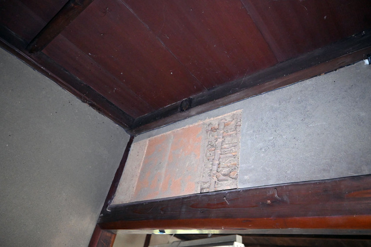 寛政4年(1792年)頃に開塾された講堂は,弘化3年(1846年)頃に,講堂北側を増築し,西側に付属施設が接続されていますが,増築・接続された部屋では赤土の壁は確認されていません。