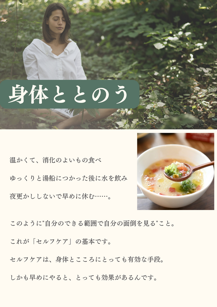 人生100年時代いつまでも健康でイキイキと過ごしたい!これは誰しもが望むこと!健康でいるためには、栄養バランスの取れた食事をして定期的に運動する習慣をつけ、質の良い睡眠をとること、つまり”健康の三本柱”を意識した身体の土台作りが基本となります。そしてこの三本柱に加えて、心と身体の声を聞いて自分自身と向き合い"ととのえる"こと、それが健康でイキイキとした毎日を過ごす秘訣でもあります。私たちは必ず食事をとります。