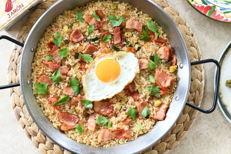 アレンジ③ チキン・生ハムスープの太陽パエリア