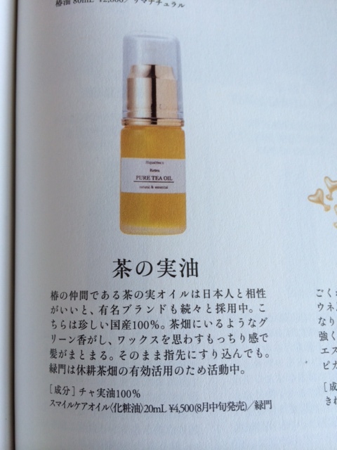 レティアのPure tea oil(茶の実油)を掲載頂きました!