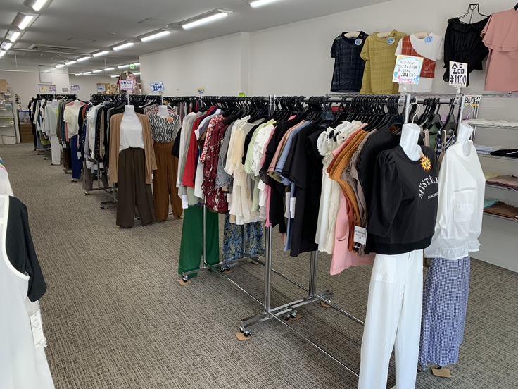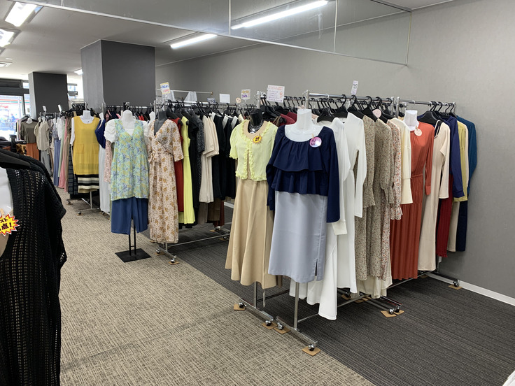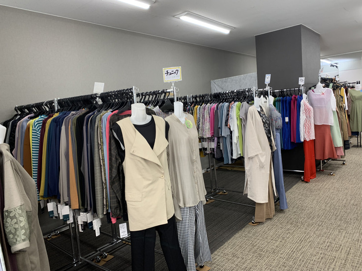 現在、店内では常時1500点(700種類)以上の衣料品を展示販売しています。