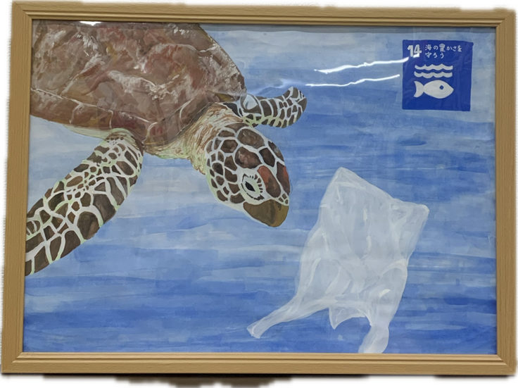 トライやるウィークに参加頂いた中学校の生徒さんからご寄贈を頂いたSDGsをテーマにした絵画です。