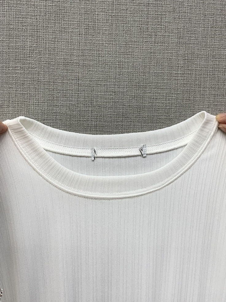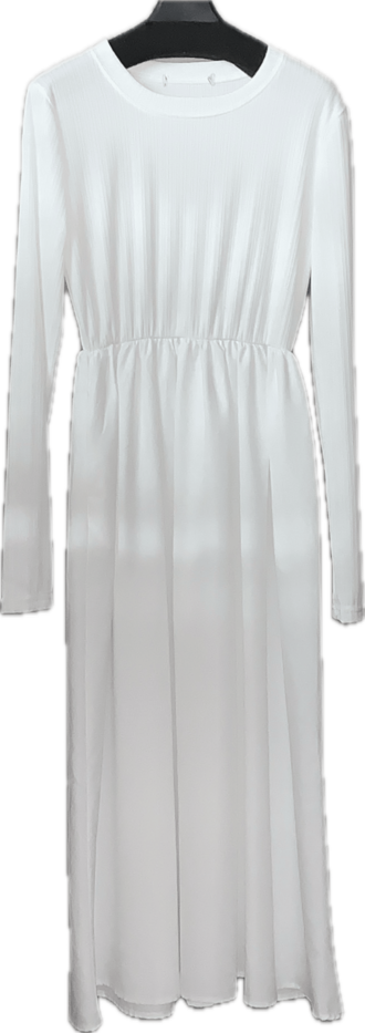 この美しいフォルムのワンピースの首元を見ると、商品のブランドタグが切除されています。
