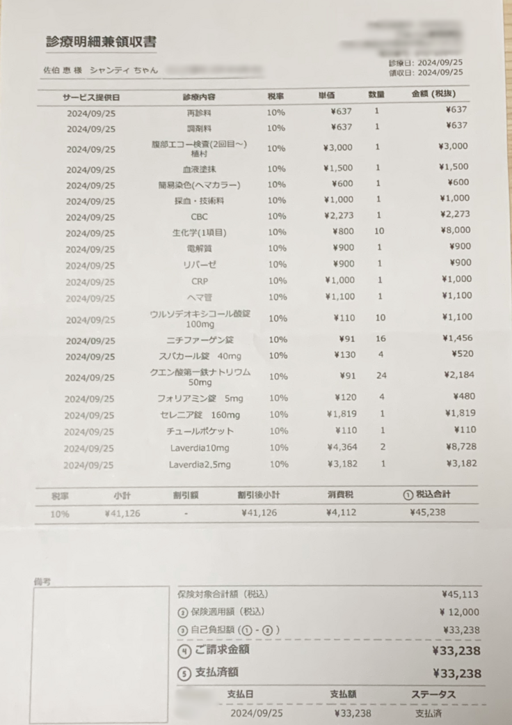 今日の診療明細書です。