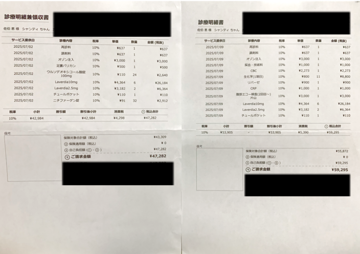 最近の診療明細書です。
