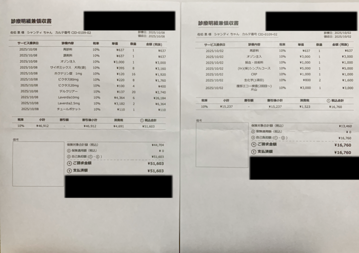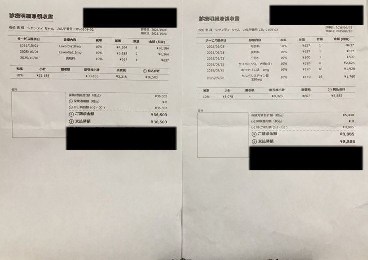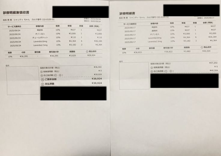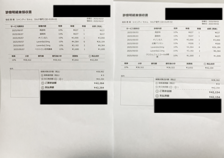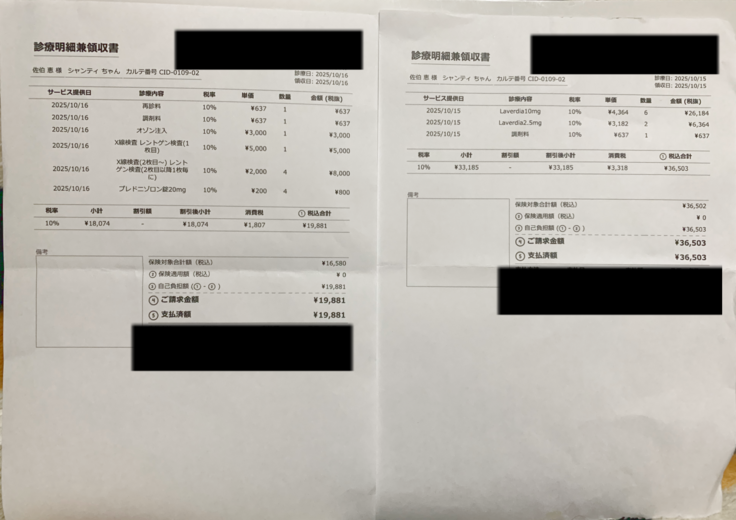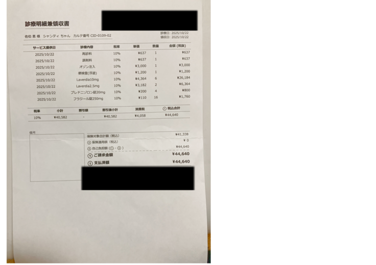 最近の診療明細書です。