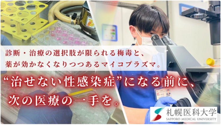 本学感染制御・臨床検査医学講座の高橋聡教授が代表のプロジェクトです。日本をはじめ先進国では過去の疾患と思う方もいるかもしれませんが、昨今、梅毒やマイコプラズマといった性感染症が再拡大しており、男女ともに誰しもが罹患する可能性が広がっています。これらの病原体に女性が感染した場合、不妊症や流産、さらには母子感染による先天性梅毒として重篤な症状を持つ赤ちゃんが生まれる可能性があります。これらの病原体治療の難しいところは、妊婦さんであれば使えない薬がある、薬剤耐性菌が出現する、診断・検査が難しいといった点にあり、何より病原体の効率的な培養方法が確立されておらず基礎的な研究が進んでいません。高橋先生のプロジェクトは、梅毒、マイコプラズマの培養技術を確立させ、薬剤やワクチン開発の基盤をつくり、市民と未来の子供達の安全を守ることを目指すものです。