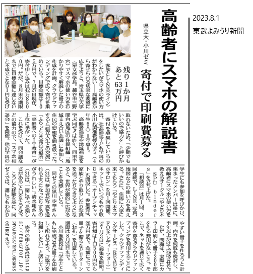また、地域の方から「老人会のスマホ勉強会で冊子を使いたいので120部欲しいです」とのご連絡をいただきました。