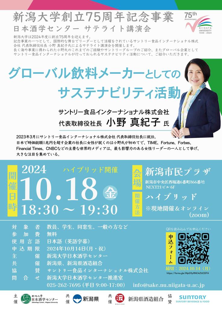 <締切間近>【新潟大学創立75周年記念事業】日本酒学センター サテライト講演会を開催します