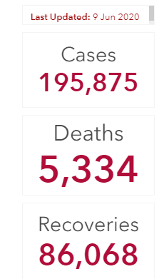 6/9(火)時点でアフリカ全土での感染確認ケースは195,875人で、2キャンペーン開始前の5/31時点で141,535人だったことを考えれば、10日足らずの期間に5.4万人の感染者が増え、20万人弱まで膨れ上がっている計算になります。