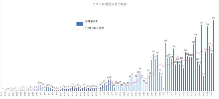 ケニアにおける新規感染者は昨日過去最高の278名を記録し、累積で5811名を数えるに至りました。