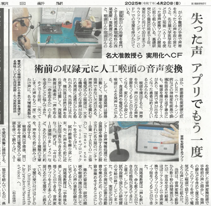 4月20日(日)発行の朝日新聞にて、本プロジェクトを取り上げていただきました!