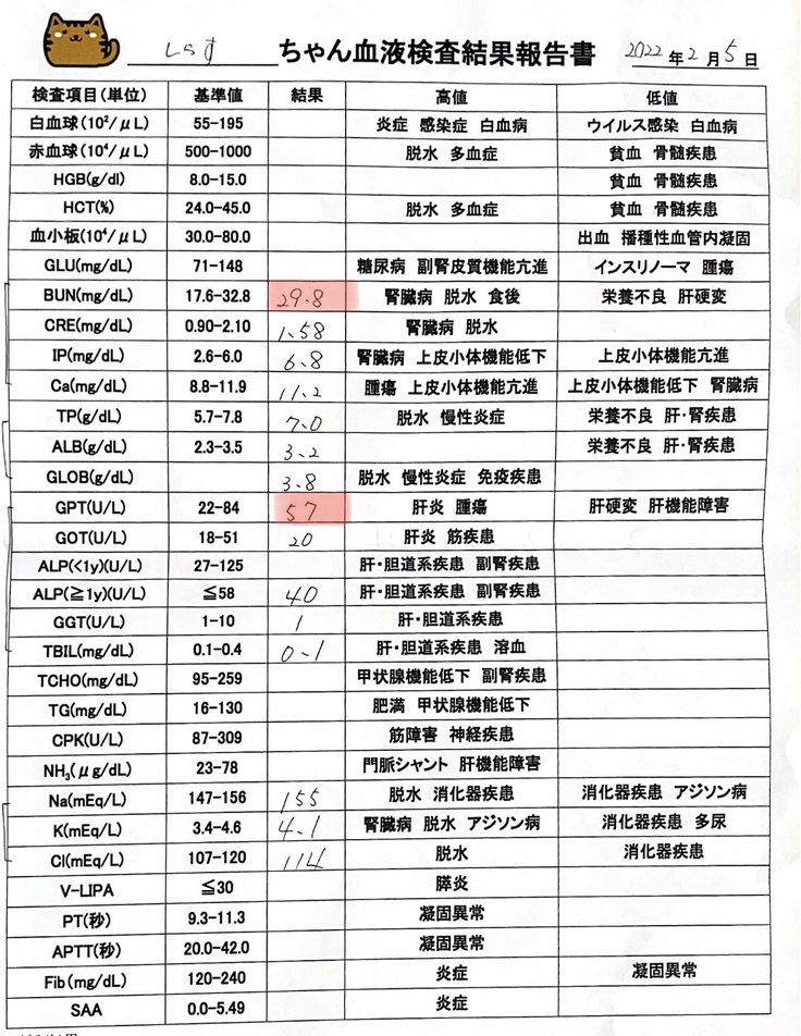 腎臓の数値について、意外にも正常値に近づいているものもあったり正常値のものもあったりで確実に良くなってきている傾向にあります!先生にも問題なしと言われました👏🏻