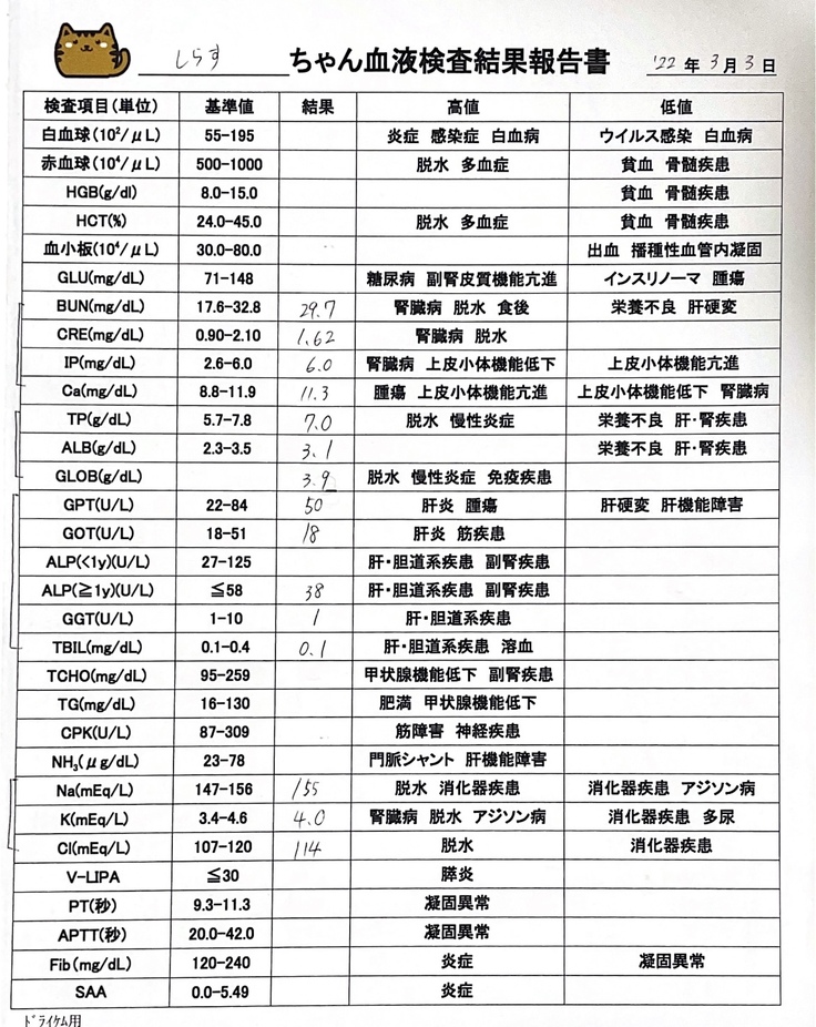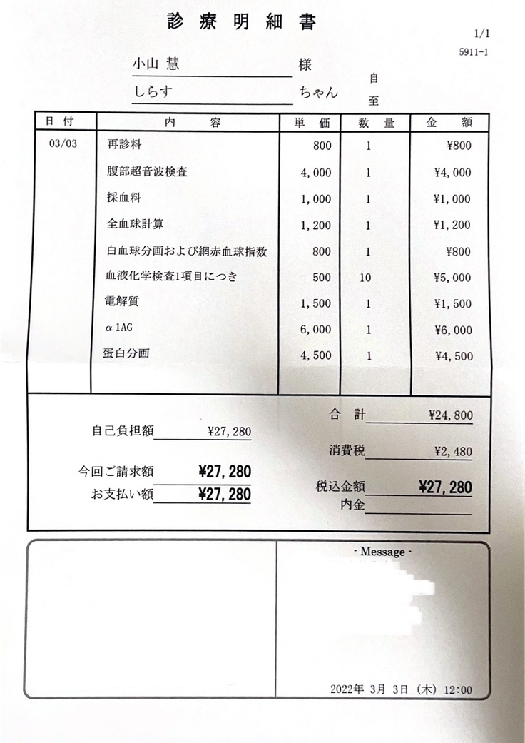 エコー検査でも臓器に異常は見られず、問題ないそうです!寛解ということで、先生ともお別れでした。ずっとしらすに対しても私たちに対しても優しく親身になってくれた先生や看護師さん。感謝でいっぱいです。しらすを救って下さったこの御恩を一生忘れません。寂しいですが、もう通わなくて済むのでしたらいいお別れということで胸にしまっておきます🥲