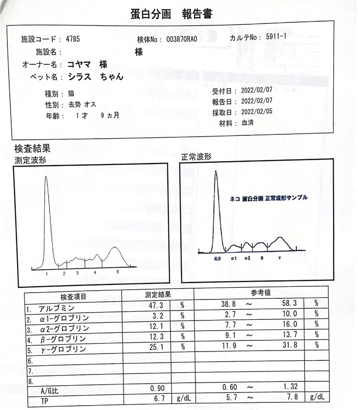 ▼こちらは前回の検査で外注に出していたものを頂いたA/G比