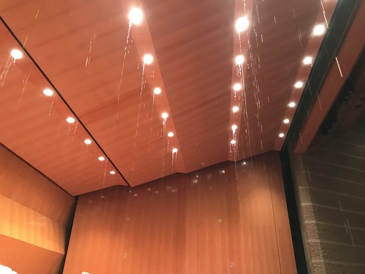 会場前に舞台上のスプリンクラーが突如放水、1分間に3,900ℓ(1時間降雨量に換算すると512㎜以上)の砂や錆びを含んだ汚れた水が舞台上に2-3分間降り、楽団員ら約60名と楽器、楽譜などが水浸しになりました。